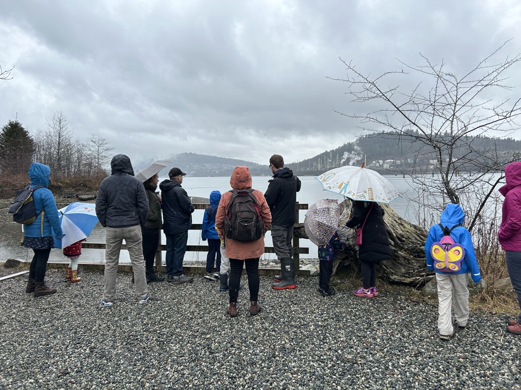 Under the cover of umbrellas and raincoats, six families braved the light, but persistent, rain during a walking tour of Maplewood Flats, a conservation area in North Vancouver back in February.
