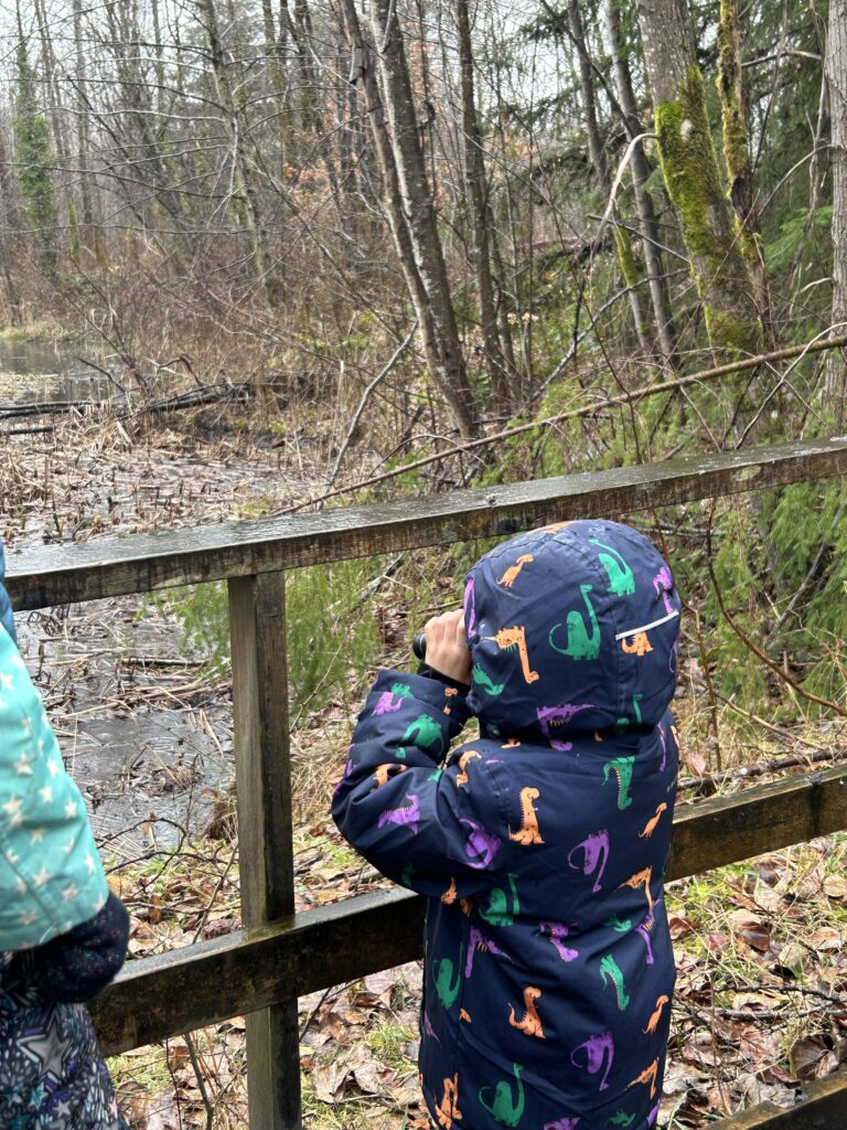 The children enjoyed observing the colourful wood ducks up close in the ponds – and using binoculars