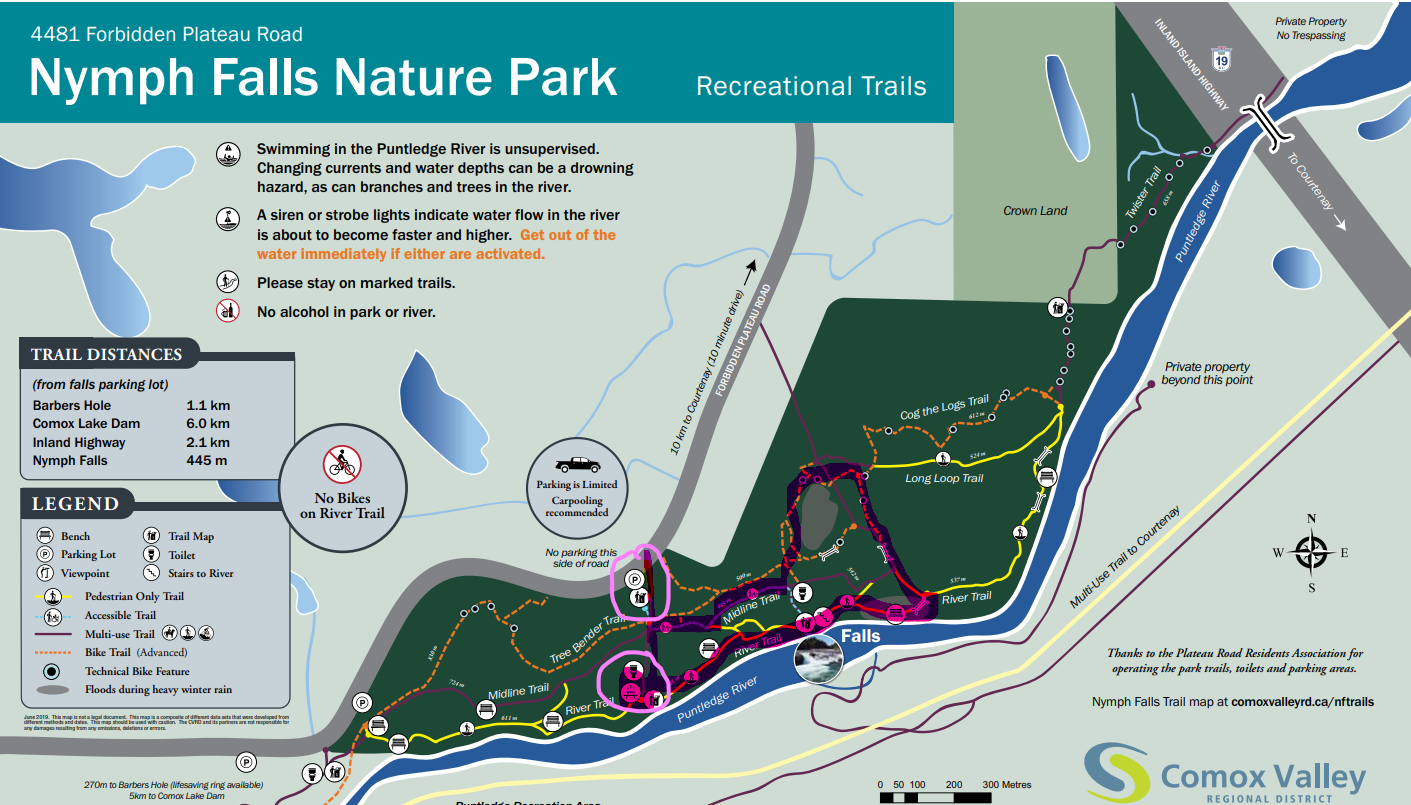 Join the Comox Valley NatureKids BC club for a morning of hiking and exploring Nymph Falls! This will be an activity geared towards children 5-12 but younger siblings are welcome. The trail is not all completely compatible with a stroller so I would recommend a child carrier. We will meet for 10:00 to 10:15am at the picnic tables (I circled them on the map). I will have a couple of activities and then we will leave for a hike around 10:30 to 11:30 and meet back at the picnic table for a story. I have attached a map of the park and highlighted our hike (this is not set in stone as the route). *Please note this is limited to 15 Families!